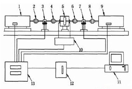 (5)被试液力变矩器 (6)弹性联轴器 (7)加载转速转矩传感器 (8)弹性联轴器