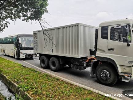 负荷拖车能够实现在全功率范围的加载动力输出。在进行试验时,负荷试验系统由负荷拖车与被试验车辆组成,由被试验车辆牵引前进,通过对被试验车辆实施精细调节且稳定的任意负荷,来测量车辆行驶过程中各种负荷的参数值,例如:车速、发动机转速、牵引力、滑转率、牵引功率、驱动轮转速、实际行驶距离、试验运行时间等。
